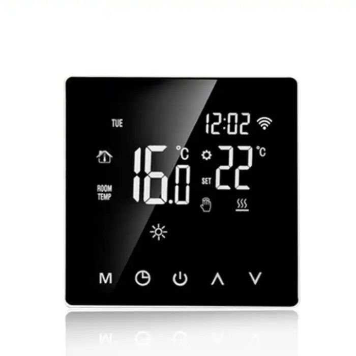 ترموستات هوشمند WiFi تویا Tuya یکی از محصولات خانه هوشمند میباشد که وظیفه کنترل سیستم سرمایش و گرمایش خانه را برعهده دارد. این ترموستات هوشمند قادر به کنترل وضعیت دمای اتاق است. بواسطه پروتکل ارتباطی WIFI شما میتوانید از طریق اپلیکیشن خانه هوشمند دما اتاق را تغییر دهید. شما براحتی می توانید از این ترموستات هوشمند در سناریوهای مختلفی مانند حضور، عدم حضور، خواب و … استفاده کنید.