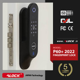 قفل اثر انگشتی +P60 دارای بدنه بسیار قدرتمند و موتور بزرگ طرح Zanetti ایتالیا می باشد. صفحه لمسی و نمایشگر این دستگیره به شیشه Tempered Glass مجهز شده که این محصول را در برابر ضربه و خش پذیری بسیار مقاوم می نماید. دستگیره هوشمند +P60 دارای قابلیت باز و بسته شدن اتوماتیک بوده و بدون نیاز به دستگیره؛ می توان آن را با تلفن همراه نیز ار هرکجای دنیا باز و بسته کرد. یکی از امکانات خاص این محصول در ورژن 2022 امکان اتصال به سیستم آیفون مرکزی و نیز سیستم های آعلان و اطفاء حریق می باشد که این تکنولوژی تنها در اختیار ALOCK می باشد. قابلیت اتصال ریموت کنترل بصورت آپشنال می باشد. قفل بدنه این قفل دیجیتال رمزدار از فولاد آلیاژی ضد زنگ و کاملا اتومات طراحی شده به گونه ای که پس از بسته شدن درب، زبانه های قفل بصورت اتومات و هوشمند بسته خواهند شد.