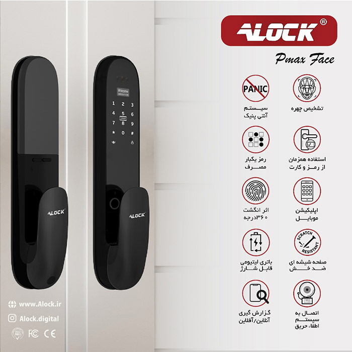 در این تکنولوژی بر خلاف مدل های موجود دربازار که تمرکز زیادی بر نوع پروتکل شناخت صورت ندارند ، این تکنولوژی از سخت گیر ترین و دقیق ترین های حال حاضر دنیاست که در دستگیره تشخیص چهره ALOCK به کار رفته است . در این پروتکل عمق زوایا و تشخیص زوایای دقیق صورت و الگوریتم های شناخت چهره مبتنی بر مادون قرمز و عمق صورت می باشد . یعنی اگر فردی دارای چهره ای پر ریش و با محاسن بلند باشد نمیتواند از ویژپگی تشخیص چهره ان استفاده نماید . یک نکته اموزشی : اگر کالایی فردی ر ا با محاسن بلند شناسایی کرد از سیستم 2.5 بعدی تشخیص چهره استفاده می کند . در این نوع دستگیره های تشخیص چهره افراد مشابه یا حتی برادران دوقلو نیز میتوانند این نوع اسکنر ها را هک کنند و درب قابلیت تشخیص دقیقی ندارد . اما در ALOCK موضوع به این شکل نیست .در Pmax+ Face تمامی ابزارهای هک شدن BLOCK شده است . یعنی برادران دوقلوی کاملا همسان نیز قادر به بازکردن این نوع دستگیره ها نیستند . در این دستگیره سیستم تشخیص چهره بر بستر مادون قرمز عمل کرده و نیازی به نور ندارد . یعنی در تاریکی مطلق نیز میتواند فر د را شناسایی کرده و اقدام به باز کردن درب نماید . تکنولوژی تشخیص چهره این محصول بر اساس سنسور حرکتی عمل مینماید . سنسور حرکتی یا همان Motion Detector در این دستگیره می تواند تا 1.5 متر فاصله را تشخیص دهد . هنگامی که کاربری مقابل درب قرار بگیرد بلافاصله سنسور حرکتی حضور را تشخیص داده و سنسور مادون قرمز فعال شده و اسکنر اقدام به دریافت بازتاب تصاویر مادون قرمز و تبدیل انها به پروتکل Hash یا توالی اعداد کرده تا سرعت دریافت اطلاعات و نیز امنیت عدم هک شدن دستگاه تکمیل شود . در ایین دستگیره دو نوع ابزار بیومتریک وجود دارد . تشخیص چهره 3 بعدی و اثرانگشت خازنی زنده . اسکنر اثرانگشت این محصول دارای سیستم 360 درجه با قابلیت ذخیره 4 پوزیشن مختلف برای هر آیدی بوده تا تعداد اثرانگشت های قابل ذخیره بر روی این محصول را بتوان به تعداد بسیار بالایی ارتقا داد . علاوه بر آن در این نوع اسکنر ها نیز پروتکل امن تبدیل داده ها به الگوریتم های غیر قابل هک Hash نیز به کار رفته است . در این دستگیره قابلیت تائید دو مرحله ای نیز جود دارد که بالاترین حالت سخت گیری بیومتریک می باشد . در این دستگیره قابلیت گزارش گیری نیز برای 1000 تردد اخیر وجود دارد بصورت آفلاین . علاوه بر اینها ، رمز و کارت نیز از ابزار های دیگر برای ورود می باشند . اپلیکیشن یکی از پر کاربرد ترین امکانات این محصول خاص می باشد . و امااااااااا در Pmax+ Face قابلیت اتصال به سیستم های هوشمند سازی ، سیستم های اعلان و اطفا حریق ، سیستم های مبتنی بر دستیار های صوتی مانند الکسا و گوگل هوم و ... ، سیستم های بیومتریک مرکزی و ایفون های مرکزی و ریموت می باشد . در برند ALOCK همه چیز بسیار فنی و بسیار تخصصی طراحی شده است . امکاناتی در برند ALOCK به کار برده شده که در برند های دیگر وجود ندارد . تلاش ما در طراحی و تولید محصولی با کیفیت برای دراز مدت است . با تبلیغات و تخفیفات جشنواره های گاه و بیگاه و تبلیغات غیر فنی می توان کالا فروخت ولی نمی توان تخصص را فروخت . با اپلیکیشن می توان این دستگیره را باز کرد و گزارش تردد ها را نیز کنترل کردذ و نیز می توان برای کاربران رمز یک یا چند بار مصرف تعریف کرد . باتری این دستگیره هوشمند از نوع لیتیومی 5000 میلی امپر ساعت می باشد که با شارژر قابلیت شارژ شدن دارد . صفحه لمسی این دستگیره از نوع Tempered Glass ضد خش می باشد . پورت میکرو یو اس بی Micro usb در این محصول برای شارژ باتری در مواقع اضطراری تعبیه شده است . کلید مکانیکی Super B یک ابزار خاص برای باز کردن درب در مواقع اضطراری خارج از دسترس شدن برد الکترونیکی می باشد . سیستم Hijack به کار رفته در این دستگیره برای حفظ امنیت کاربران در مواقع زورگیری و یا اتفافات ناگهانی امنیتی به کار خواهد امد . سیستم پانیک به کار رفته در دستگیره های هوشمند ALOCK سبب شده تا در مواقع بروز حوادث و بلایا و یا حریق بدون هیچ گونه تائیدی بتوان درب